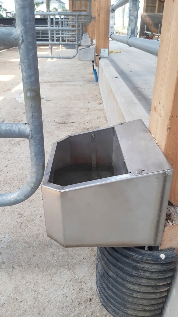 Sérhannað drykkjartrog ætlað fyrir nautgripi sem sett er milli grinda í útihúsum, hægt að festa í H bita eða á vegg.