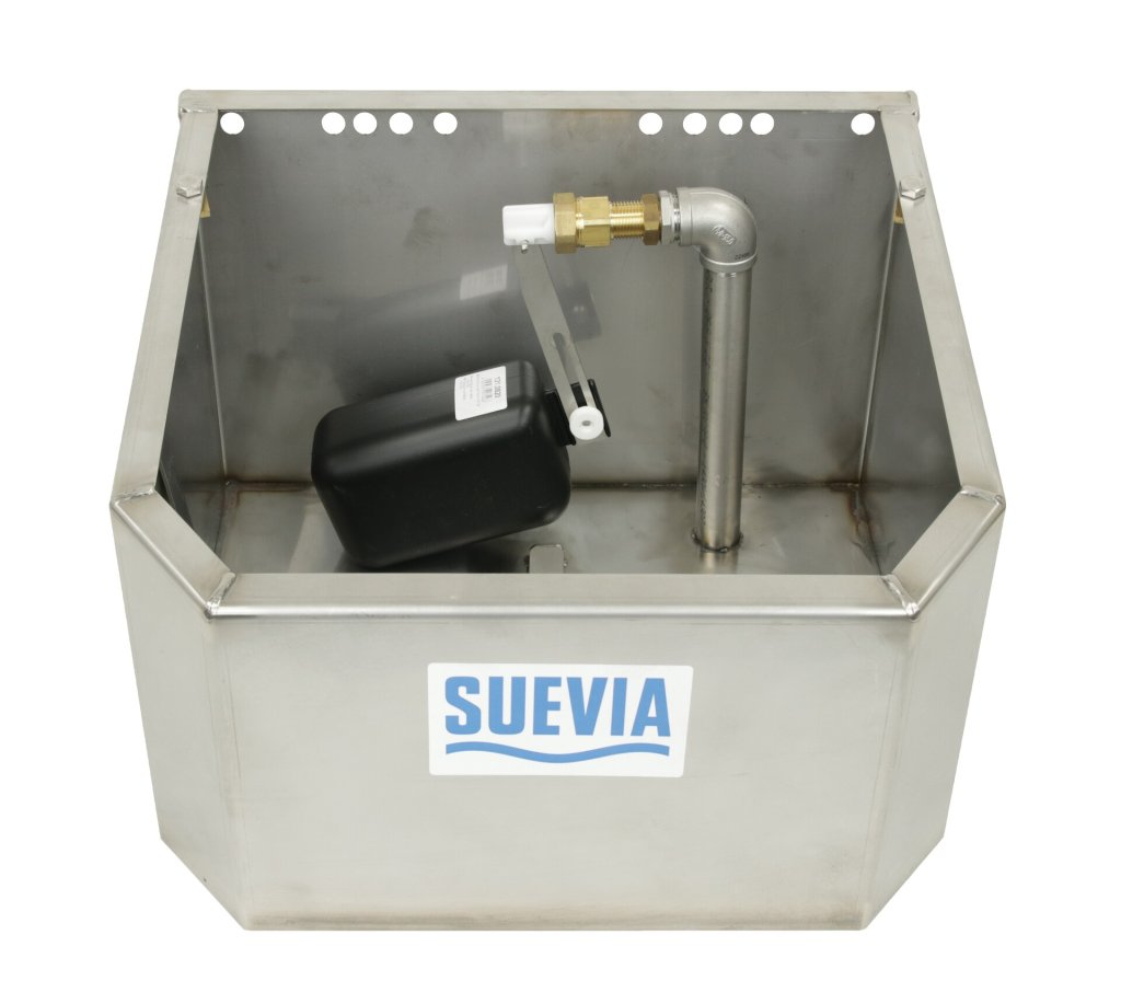 Sterkbyggt úr 2mm ryðfríu stáli og með inntakið á botni trogsins lágmarkar áhættu að gripirnir fikti í lögnunum.